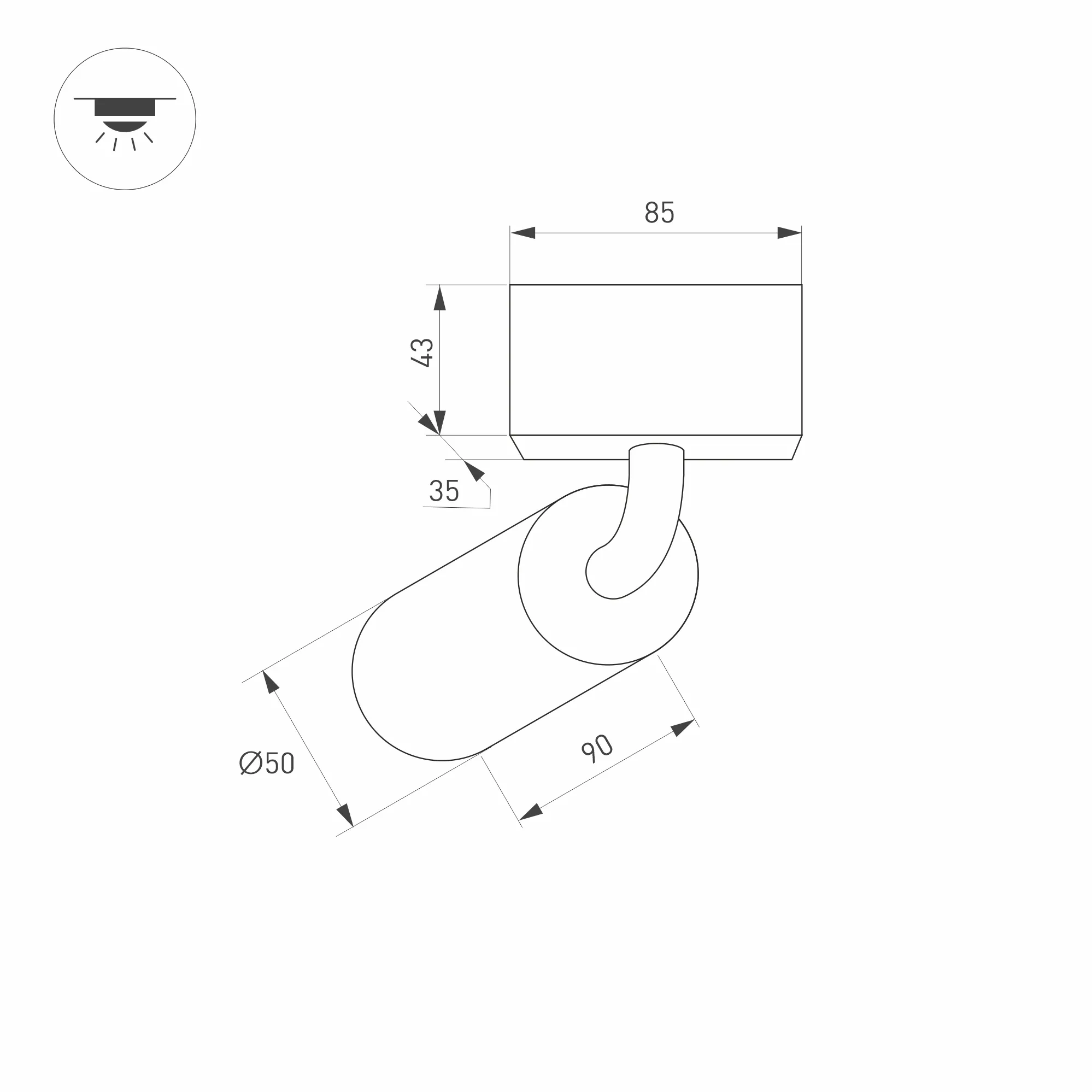 Светильник поворотный для магнитных треков шириной 45мм, 7Вт. Цвет свечения ДНЕВНОЙ 4000K, световой поток 517лм, угол 24°, CRI>90. Корпус прямоугольный, металл, цвет черный, IP20. Размеры LxWxH 84x35x140мм. Входное напряжение DC24V, мощность 7Вт. Драйвер DС24V/AC230V поставляется отдельно. Диммируется только с 026407(1), 027633.