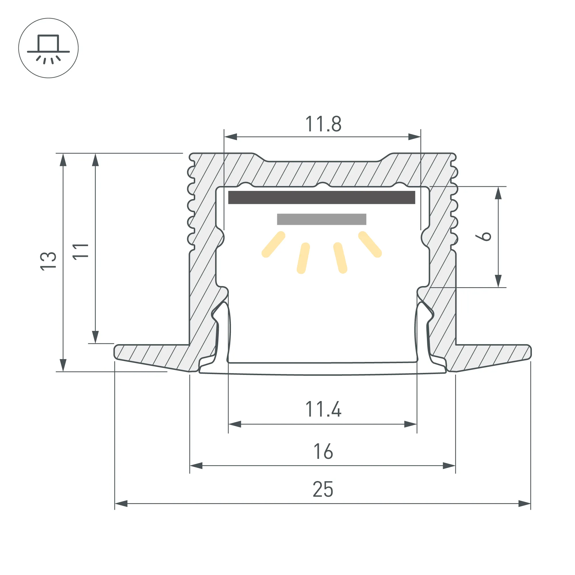 Алюминиевый профиль для светодиодных лент и линеек. Цвет - черный RAL9005 (порошковая окраска). Габаритные размеры (L×W×H): 2000x25x13 мм, паз для установки 16 мм. Ширина площадки для ленты 12 мм. Экраны, заглушки и другие аксессуары приобретаются отдельно. Цена за 1 метр.