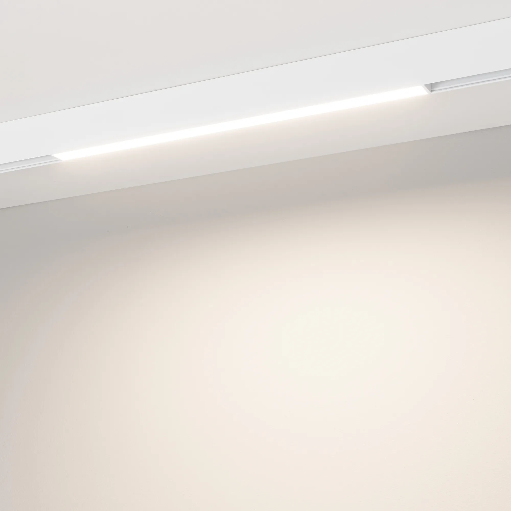 Светильник для магнитных треков MAG-ORIENT шириной 26 мм. Мощность 12 Вт, св. поток 660 лм, 55 лм/Вт, дневной 4000 K, CRI>90, угол 80°, напряжение питания 48 В. Белый прямоугольный корпус из металл, экран поликарбонат, степень защиты IP20. Размер: длина 462 мм, ширина 22 мм, высота 42 мм. Монтаж на трек MAG-ORIENT. Пульсация <1%.