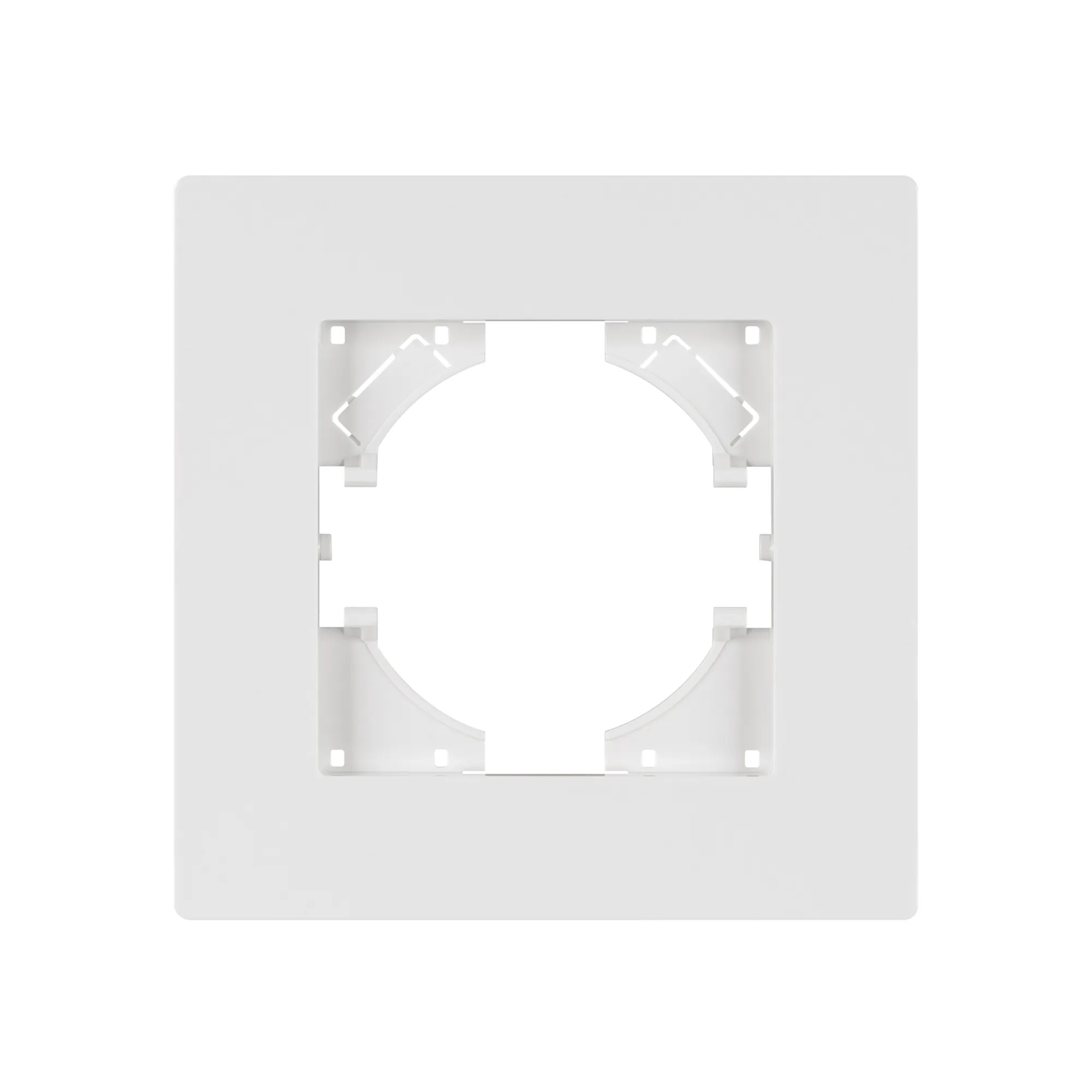 Рамка пластиковая на 1 пост, под встраиваемый механизм. Цвет - белый. Уровень герметичности IP20. Ориентация монтажа - горизонтальная (основным ориентиром служат посадочные выступы для накладки механизма).