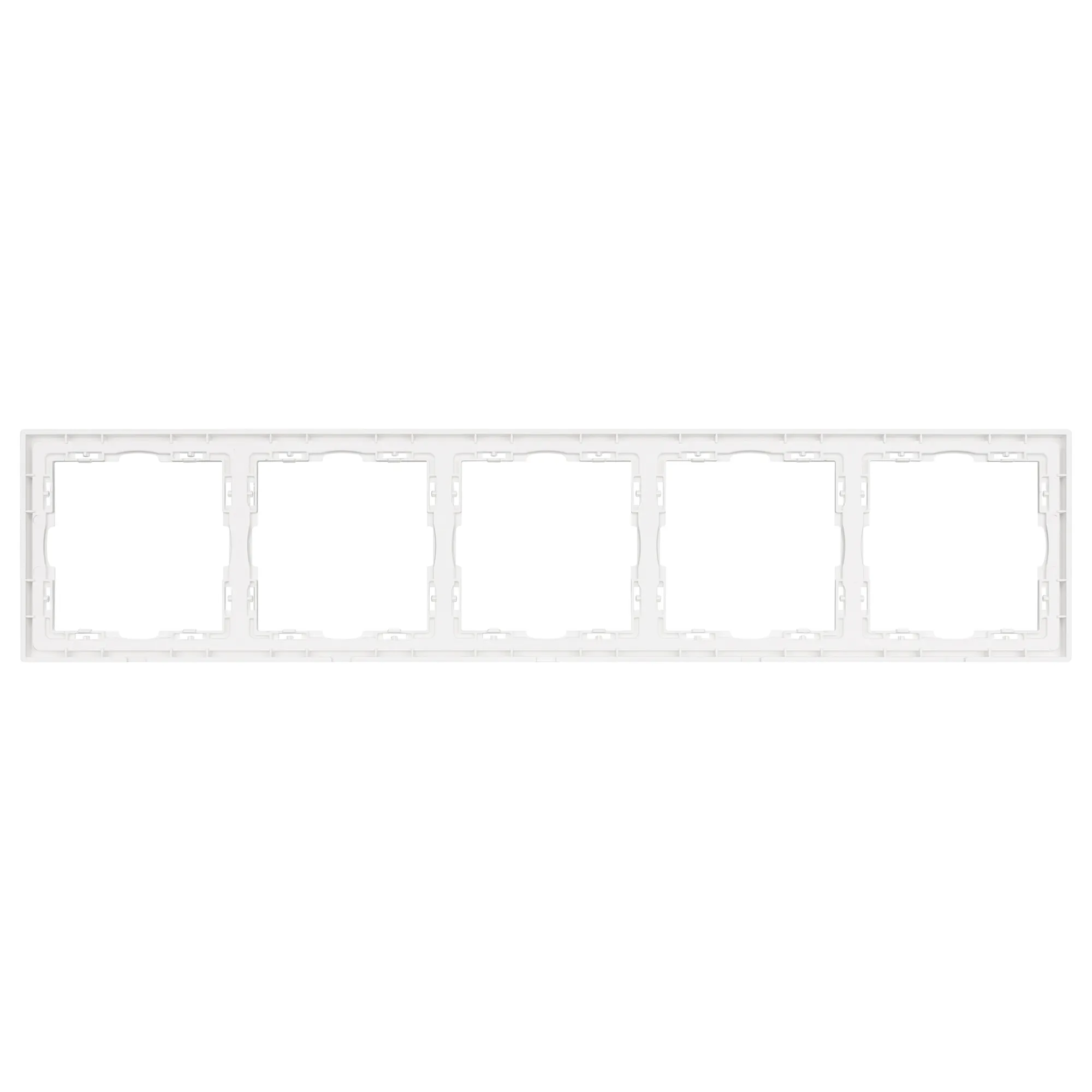 Рамка пластиковая на 5 постов, под встраиваемый механизм. Цвет - никель, с Soft-Touch поверхностью. Среднего уровня герметичности IP20. Ориентация монтажа горизонтальная.
